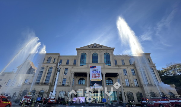 훈련은 천안시 소재 비렌티웨딩홀에서 이별범죄(방화)로 인한 대형화재, 다수사상자 발생 등 실제와 같은 상황을 가정해 이뤄졌다.