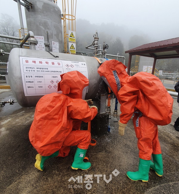 이번 훈련은 천안서북소방서 및 청주 화학물질안전원 관계자와 합동으로 실시했으며 유해화학물질 유출·누출로 인한 화학사고 발생 시 신속한 초동대응과 유관기관 간 긴밀한 협업체계 구축을 위해 마련됐다.
