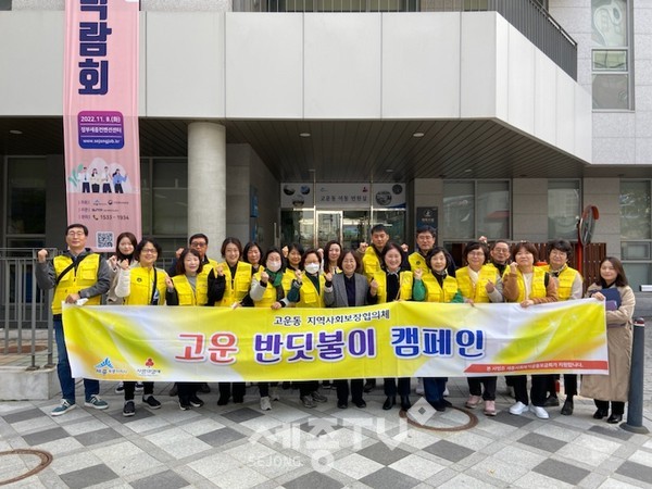 세종특별자치시 고운동 지역사회보장협의체(공동위원장 김민예·안정순)가 3일 주변 상점가 상인, 시민 등을 대상으로 복지사각지대·민간자원 발굴 홍보를 위해 ‘고운 반딧불이 캠페인’을 실시했다.
