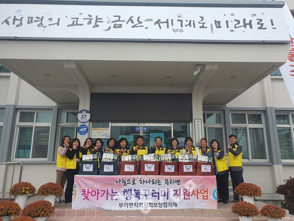 금산군 부리면지역사회보장협의체(민간위원장 한진구)는 지난 9일 어려운 이웃을 돕고 복지 사각지대를 발굴하기 위해 독거노인 등 저소득층 15가구에 행복꾸러미를 전달했다.
