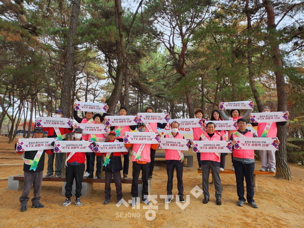 세종특별자치시 조치원읍 주민자치회(회장 김연오)가 지난 15일 오봉산 주요 등산로 일원에서 가을철 산불예방 캠페인을 벌이고 케이티엑스(KTX) 세종역 신설을 염원하는 릴레이 챌린지를 진행했다.