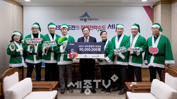 초록우산 어린이재단 세종지역본부(본부장 박미애)가 16일 시청 접견실에서 세종특별자치시(시장 최민호)에 ‘2022 초록우산 산타원정대 캠페인’을 통해 마련한 성금 9,000만 원을 전달했다.