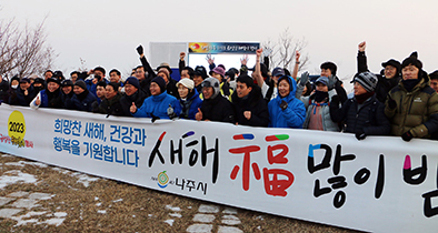 전라남도 나주시(시장 윤병태)는 1일 오전 7시 10분부터 금성산 정상부 노적봉에서 시민 1000여 명과 함께 금성산 해맞이 행사를 개최했다고 밝혔다.