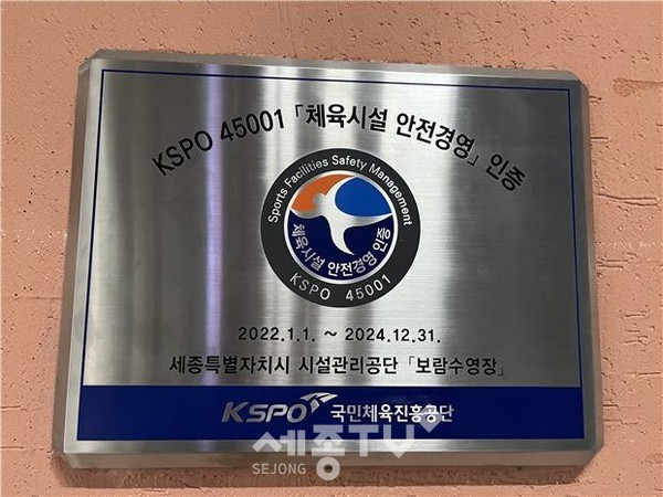 세종시설관리공단이 운영하는 보람수영장이 체육시설 안전경영인증(KSPO45001) 사후관리 심사에서“적합”판정을 획득했다고 지난 27일 밝혔다.