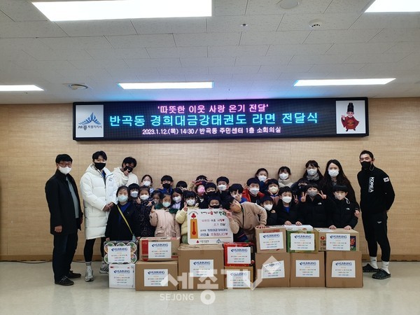 경희대금강태권도는 지난해 이어 올해도 원생들이 직접 마련한 라면 500여 개를 끼니를 거르는 친구들에게 전달해달라며 반곡동에 기부했다.