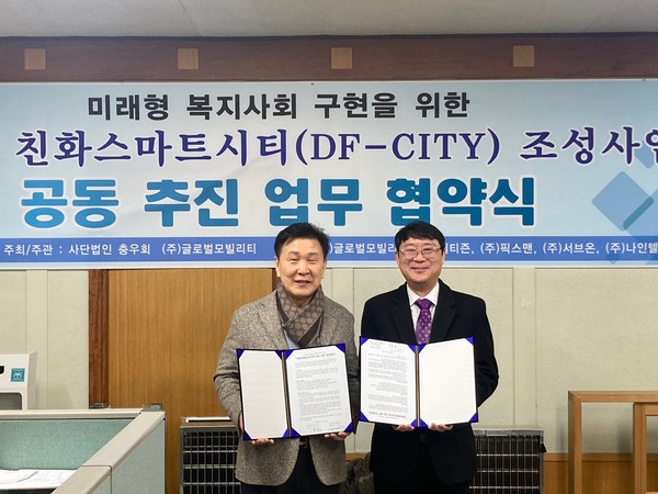 (사)총우회 (회장 양길모)와 (주)글로벌모빌리티(대표 서민덕)는 24일 (사)충우회 회의실에서 장애인친화스마트시티(DF-CITY)플랫폼 기반의 "장애인 친화 스마트시티"를 조성하는 사업을 공동으로 추진하기로 업무협약을 체결하였다.