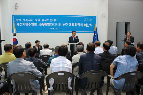 새정치민주연합 세종시당은 7일 오전 이해찬 상임선대위원장를 비롯한 선대위 관계자 100여명과 이춘희 시장 당선인과 시의원 당선인들이 참석한 가운데 6.4 지방선거 선거대책위원회 해단식을 가졌다.