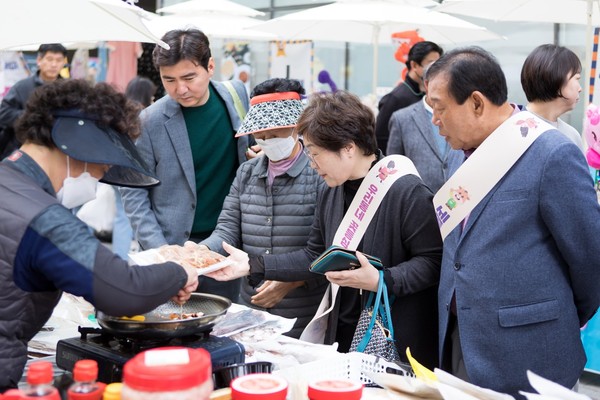 최 시장은 캠페인 이후에도 부인인 전광희 여사와 어울림 시장을 돌며 소상공인들을 격려하고, 다양한 상품을 시식·구매하며 소통의 시간을 가졌다.