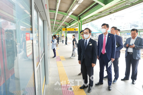 박상돈 천안시장은 18일 두정역 북부출입구 준공식에 이어 두정역에서 쌍용역까지 수도권 전철을 타고 현장점검에 나섰다. 현장점검에서 대중교통체계를 시내버스에서 전철로 확대하여 우리시의 대중교통 환경을 혁신적으로 변화시켜야 한다고 말했다.