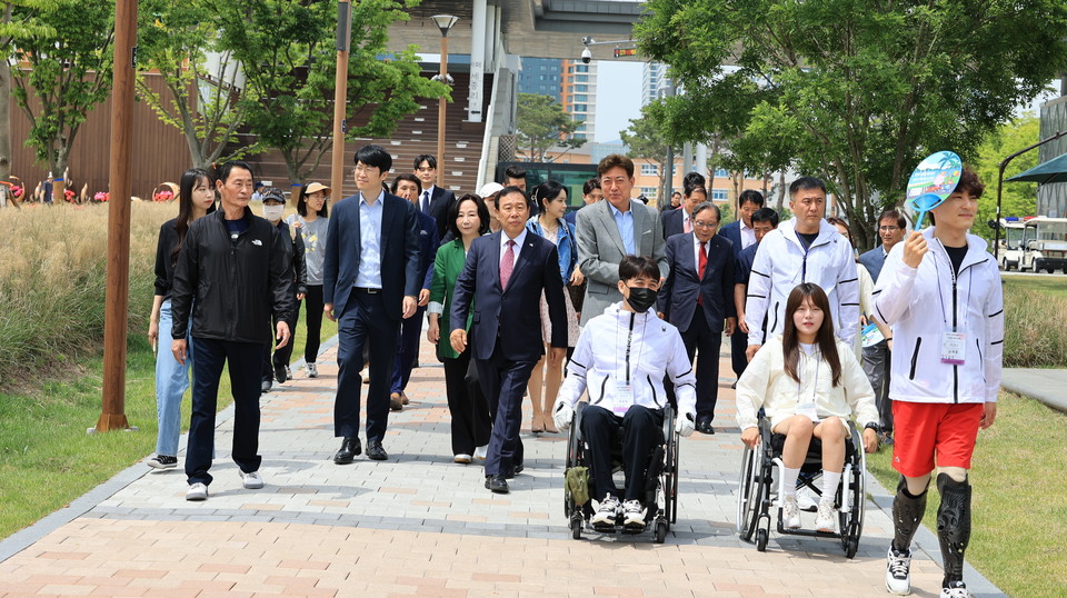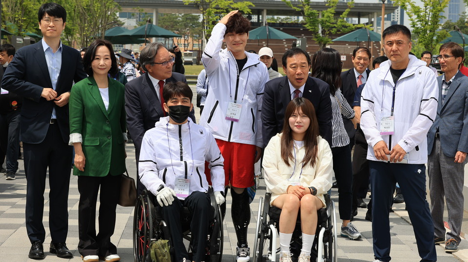 이어 최근 전국장애인펜싱 선수권대회에서의 심재훈,김예지 선수들의 노고를 치하했다.