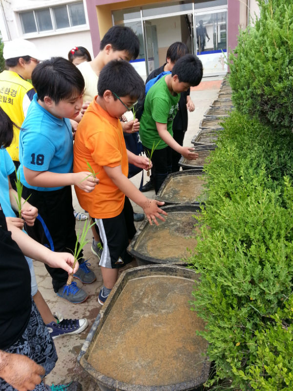 이 학습농장은 고무화분에 학생들이 직접 모를 심은 뒤 물을 주고 잡초와 병충해를 방지하는 우렁이를 넣고 벼 생육과정 등 친환경농업 생태환경을 관찰하며 벼를 재배하는 미니논으로 운영된다.