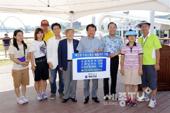 시는 이번 기증에 따라 갑천 수상 스포츠 체험장에는 카약, 용선, 페달보트, 레프팅 보트 등 모도 6종 43대의 스포츠 기구를 확보하게 됐다.