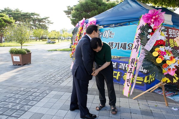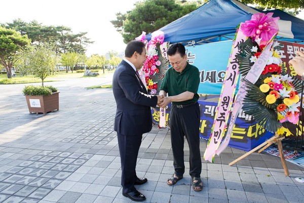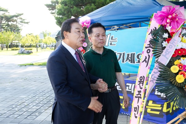- 세종시청앞 세종보 존치 개인 시위자 직접 찾아가 - 최민호시장이 세종시청앞에서 세종보 존치 시위자 직접 격려하는 모습 Tag #세종보존치 #최민호시장 저작권자 © SJB세종TV 무단전재 및 재배포 금지 이유진 기자 다른기사 보기 페이스북 트위터 카카오톡 네이버블로그 구글+ URL복사 기사공유하기