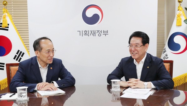 김영록 지사는 이날 오전 정부서울청사에서 추경호 경제부총리와 황순관 기재부 복지안전예산심의관 등이 참석한 가운데 기재부와 예산간담회를 갖고 지역현안과 내년도 국비 지원을 강력히 요청했다.