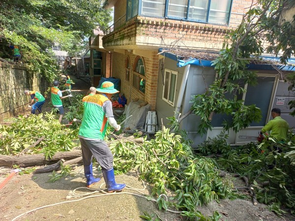 이날 세종시 자율방재단원 15명은 연서면 효교로 135-22번지에 위치한 복지시설 ‘늘푸른집’을 찾아 전도 수목을 제거하는 작업을 진행했다.