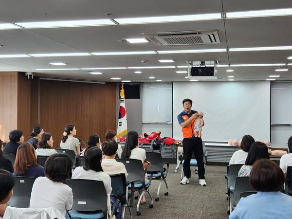안전교육은 응급상황이 발생했을 때 신속하게 조치할 수 있도록 ▲영아·소아·성인 대상 심폐소생술 ▲자동심장충격기(AED) 사용법 ▲기도폐쇄 시 대처방법 등으로 구성됐다.