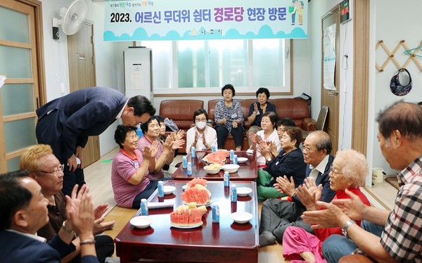 2일 나주시에 따르면 윤병태 나주시장은 일찍이 지난달 13일 남평읍을 시작으로 읍·면·동 20곳 무더위쉼터로 지정된 경로당을 찾아 냉방기기 가동 여부, 청결 상태, 어르신 안부를 각별히 점검하고 있다.