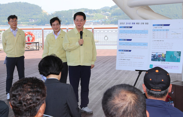 양식어가 폭염 피해 예방을 위해선 액화산소공급기 등 고수온 대응 장비 지원을 위해 15억 원을 해당 시군에 교부하는 등 발 빠른 폭염 예방 조치를 시행함으로써 폭염 피해를 최소화할 방침이다.