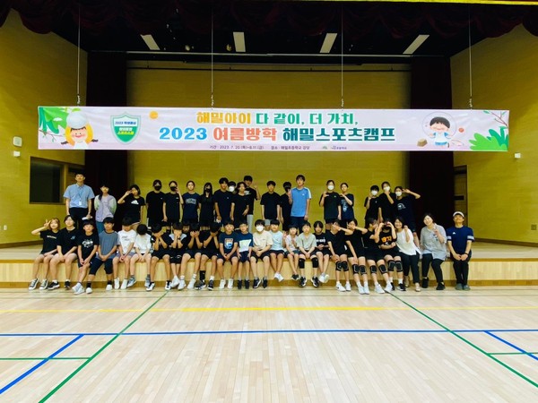 해밀초등학교(교장 유우석, 이하 해밀초)는 7월 20일부터 8월 11일까지 해밀초 강당에서 해밀초‧중학교 학생들을 대상으로 ‘2023 여름방학 해밀 스포츠 캠프’를 열었다.