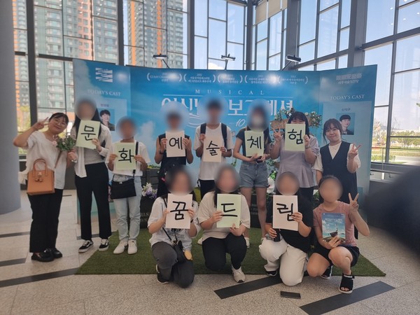 세종시 꿈드림 문화예술체험 프로그램은 학교 밖 청소년들이 또래들과 함께 다양한 문화 및 예술을 경험하고, 이를 통해 건강한 스트레스 해소법을 배울 수 있도록 영화, 뮤지컬 등 다양한 문화예술을 체험 하는 프로그램으로, 이번 2023년 문화예술체험 프로그램은 청소년 욕구조사에 따라 세종예술의전당에서 뮤지컬“여신님이 보고계셔”를 관람하였다.