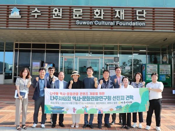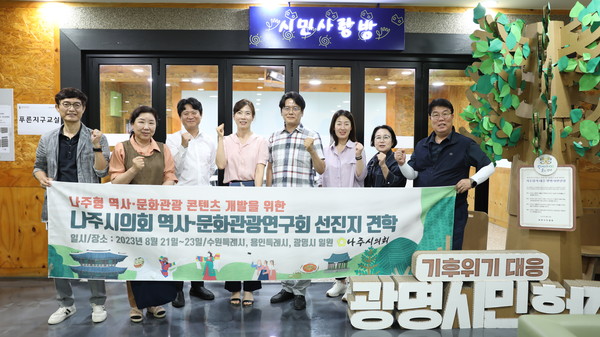 나주시의회 의원연구단체 ‘역사문화관광연구회’(대표의원 한형철)는 21일부터 3일간 지역 고유의 문화콘텐츠 개발방안 모색을 위하여 수원문화재단, 광명문화원, 광명시 도시재생지원센터, 광명업사이클아트센터, 한국민속촌을 각각 방문했다.