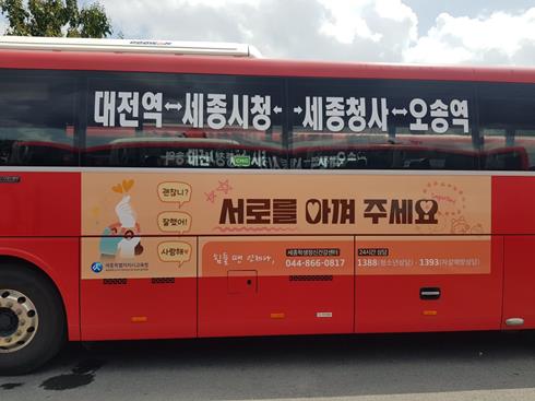 또한, ▲학교로 찾아가는 학생 정신건강 증진 프로그램 ‘내 마음을 피자(28교, 8.31.~11.15., 굿네이버스)’ ▲마음 안심버스 캠페인(5교, 9.25.~10.11., 세종광역정신건강복지센터) ▲생명 존중 문구 버스 홍보(버스 11대, 세종 1000, 세종BRT/B1, 세종991, 8.21.~12.31.)를 진행한다.