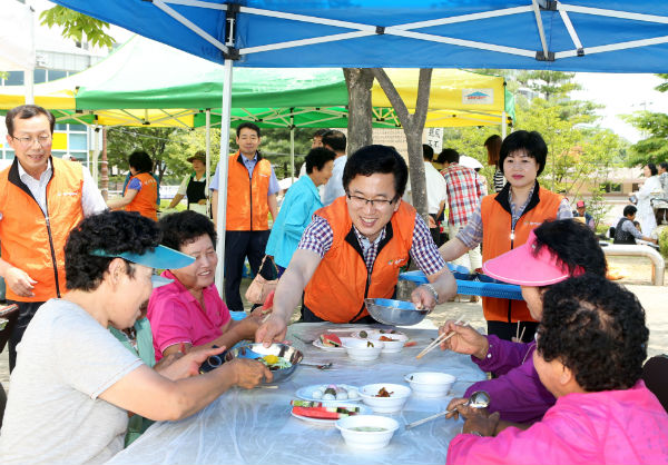 이번 행사에는 복지만두레 회원 등 50여 명이 봉사에 나서 어르신들에게 국수와 다과를 제공했다.