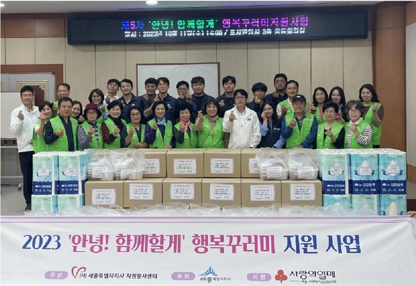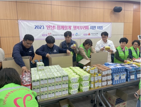 [세종TV=이유진기자]세종특별자치시시설관리공단(이사장 조소연, 이하 공단)은 지난 11일 2023 행복나눔꾸러미 지원사업에 참여하여 세종시 관내 노인 및 장애인을 대상으로 생필품과 밑반찬 등이 담긴 꾸러미 배달 봉사활동을 실시했다.
