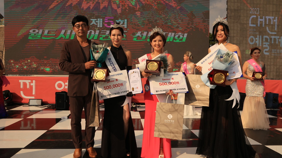 2023'월드시니어퀸즈선발대회 진선미 최종선발전에서 진(眞)에 유은숙씨가 트로피와상금,선(善)에는 강순자씨가, 미(美)에는 이홍선 외 2명이 수상했다.