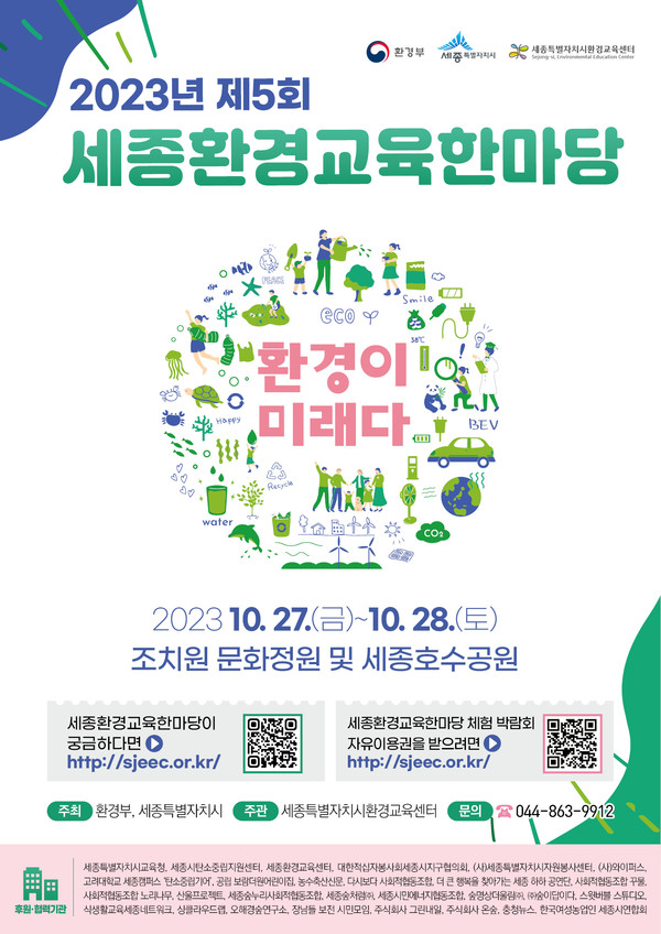 [세종 TV=이유진기자]세종시민 모두가 환경문제를 인식하고 시민 차원의 실천적 행동을 다짐하는 ‘2023년 제5회 세종환경교육한마당’이 오는 27일 조치원문화정원과 28일 세종호수공원 일대에서 열린다.