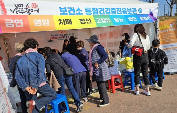 ‘2023나주축제 영산강은 살아있다’ 축제장에서 운영 중인 보건소 건강증진 부스가 축제 방문객의 건강증진 도우미 역할을 톡톡히 하고 있다.