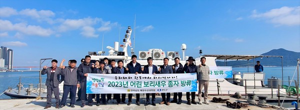 4개 시군 해역에 어린 보리새우 300만마리 방류