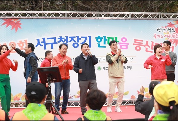 이날 장종태 전) 서구청장과 서철모 현)서구청장을 비롯, 전명자 서구의회 의장, 박범계 국회의원, 양홍규 국민의힘 대전시 당협위원장, 양현모 대전산악연맹회장, 서구 산악회 회원 및 서구 시민들 1,200여 명이 참석해 눈길을 끌었다.”라고 보도하고 있다.