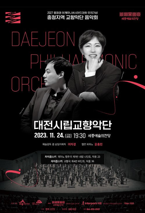 [세종 TV=이유진기자]오는 11월 24일(금) 오후 7시 30분 세종 예술의 전당에서 대전시립교향악단의 연주로 2027 충청권 하계세계대학경기대회 유치기념 음악회를 개최한다.