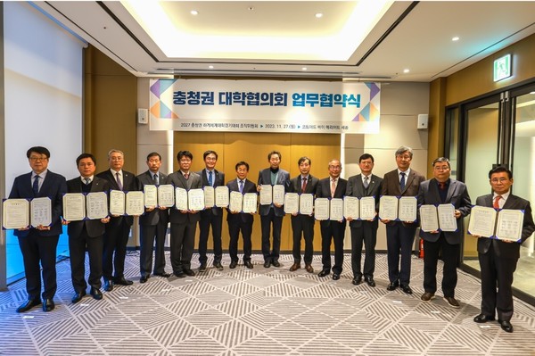 ‘충청권 대학협의회’는 2027 충청권 하계세계대학경기대회의 성공적 개최를 위한 대학 협력 네트워크 구축을 목적으로 대한대학스포츠위원회(KUSB), 한국대학스포츠협의회(KUSF)와 권역별 총장협의회장 대학, 경기 개최 대학 및 충청권 주요 대학을 포함하여 구성되었으며, 이날 첫 회의를 열어 협약을 진행하였다.