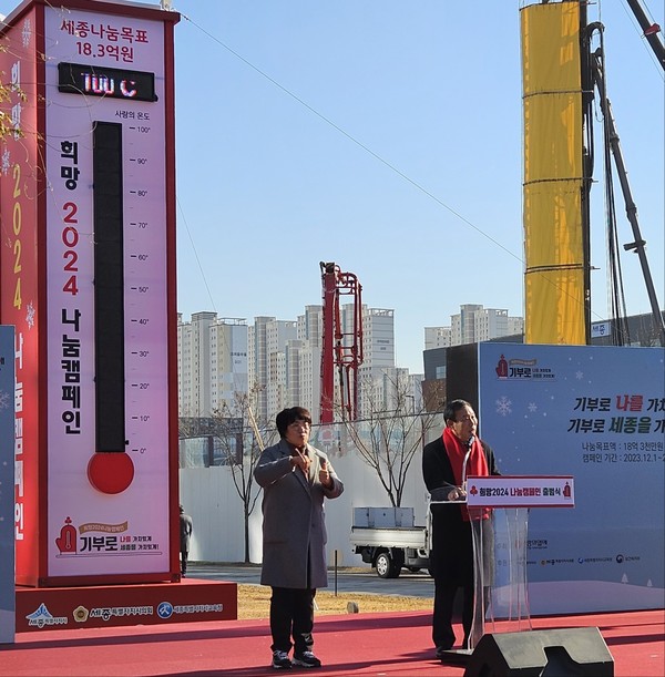 세종특별자치시(시장 최민호)는 세종사회복지공동모금회(회장 박상혁)와 1일 시청 광장에서 ‘희망2024나눔캠페인’ 출범식을 열고 사랑의 온도탑을 제막했다.