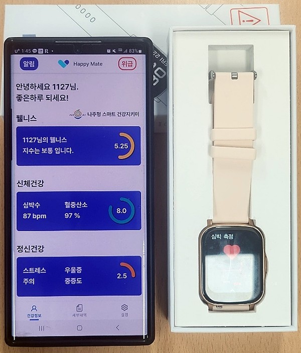 나주시(시장 윤병태)는 지난 1일 치매안심마을에 거주하는 홀몸 또는 75세 이상 어르신, 경증치매환자 100명에게 스마트워치를 보급, 실시간 생체 및 심리 수치 측정·분석에 따른 건강 돌봄서비스를 시작했다고 5일 밝혔다.
