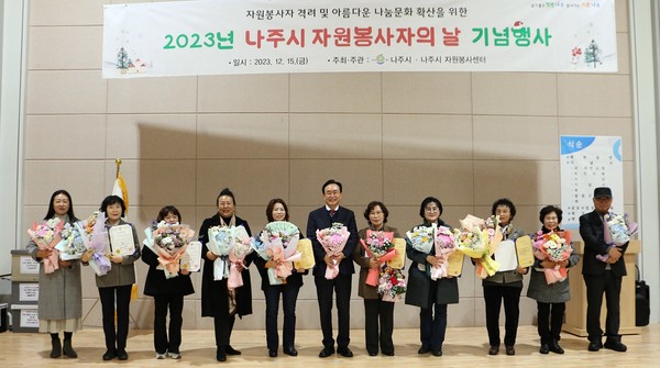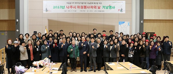 전라남도 나주시(시장 윤병태)는 12월 5일 자원봉사자의 날을 기념해 최근 국립나주숲체원 대강당에서 ‘2023년 자원봉사자의 날 기념행사’를 개최했다고 19일 밝혔다.