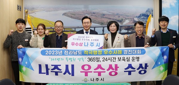 나주시(시장 윤병태)는 지난해 전라남도 적극행정 우수사례 경진대회서 ‘36524시간 보육실운영사업이 우수상을 수상했다고 2일 밝혔다.