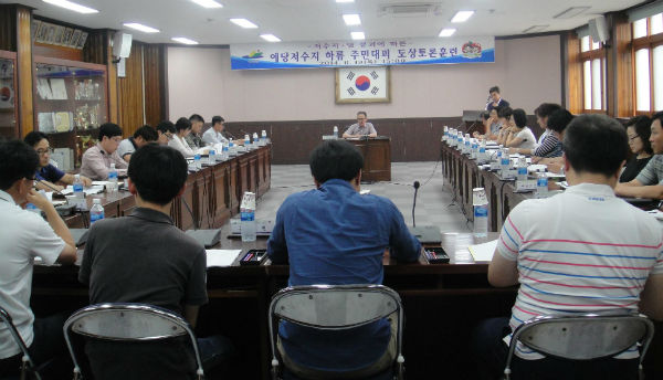 이날 참가자들은 호우특보 단계부터 댐 붕괴 단계까지 총 6단계에 맞춘 단계별 시나리오와 기관별 역할, 추진사항 등을 발표했다.