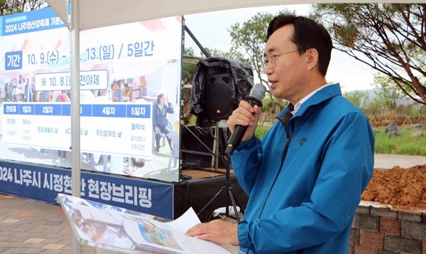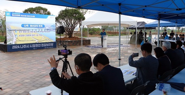 나주시는 이날 오후 2시 영산강 정원 조성 현장에서 언론인 70여명이 참석한 가운데 윤병태 시장이 ‘2024 시정 현안 현장브리핑’을 했다고 밝혔다.