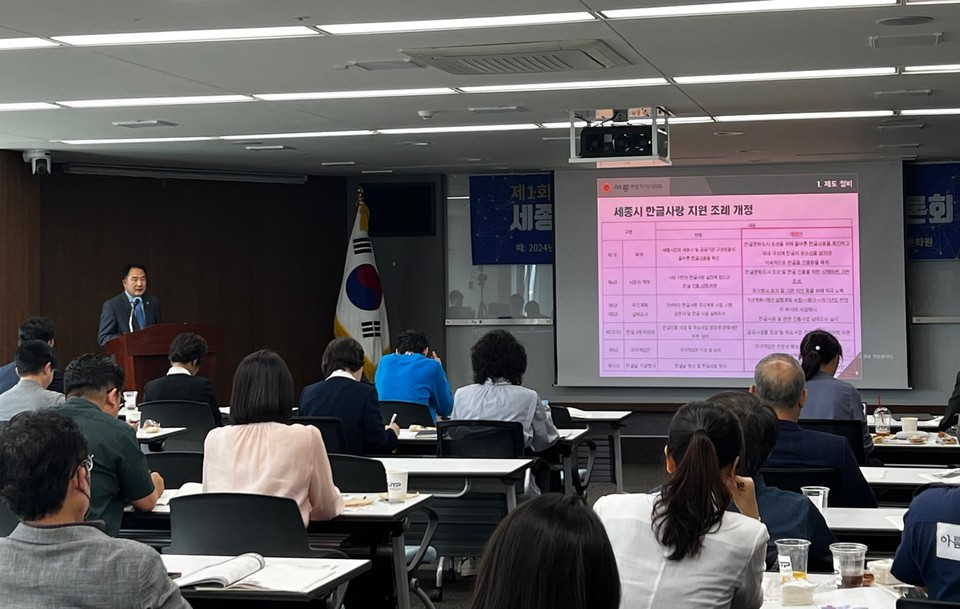 이날 토론회는 한글문화수도 세종시를 위한 기반 조성 문제 및 다양한 세종시 한글전략 등에 대한 논의를 위해 세종 국어문화원과 먼데이 타임스에서 공동으로 주최했다.