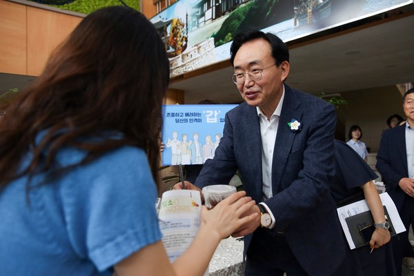 윤병태 시장과 감사실 직원 등은 출근길 직원들에게 커피 나눔과 상호 존중 스티커 투표를 진행하는 등 반가운 인사로 활기찬 일과를 응원했다.