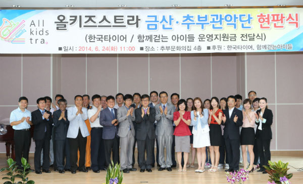 한국타이어는 사회복지법인 '함께걷는아이들'과 충남 금산지역 소외계층 아동 60여 명으로 구성된 '올키즈스트라 금산∙추부관악단'을 창단했다.