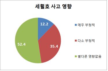 '다소 부정적'에 35.4%, '매우 부정적'에는 12.2%의 응답률을 기록하며, 세월호 사고가 기업경영에 전반적인 악영향을 미친 것으로 나타났다.
