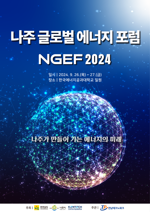 나주시(시장 윤병태)는 오는 9월 26일부터 27일까지 이틀간 빛가람 혁신도시에 위치한 한국에너지공과대학교(KENTECH·켄텍) 일원서 ‘나주 글로벌에너지포럼2024’를 개최한다고 13일 밝혔다.