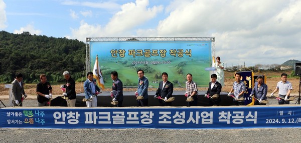 나주시(시장 윤병태)는 12일 안창동 573번지 일원 총 27홀 규모 ‘안창 파크골프장’ 조성 착공 기념식을 가졌다고 밝혔다.