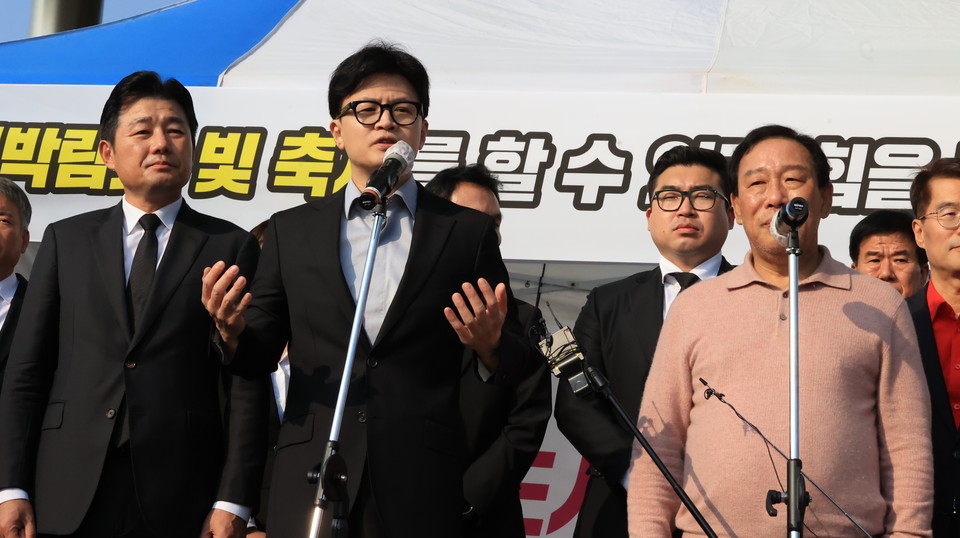 이 자리에서 한동훈 대표는 "국비가 확보된 경우 지방의회는 쌍수를 들고 환영하고 한푼이라도 더 받고 더 빨리 사업을 추진하겠다고 하는 것이 정상인데 세종에서는 이상한 일이 벌어지고 있다"고 말했다.