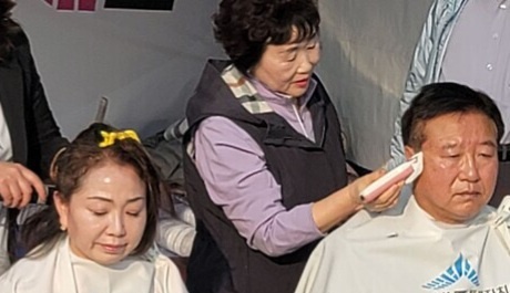 김광운, 홍나영 의원 등 세종시의회 국민의 힘 소속 7명의원 전원은 8일 최민호 세종시장의 단식 현장 앞에서 삭발식을 갖고 민주당이 폭압정치를 하고 있다며 즉각 중단할 것과 국제정원도시와 빛축제 예산 통과를 촉구했다.