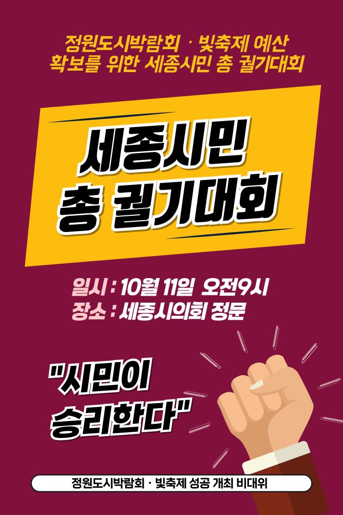 -11일 오전 9시 세종시의회 정문서 박람회 빛축제 예산확보 비상대책위 집회예정